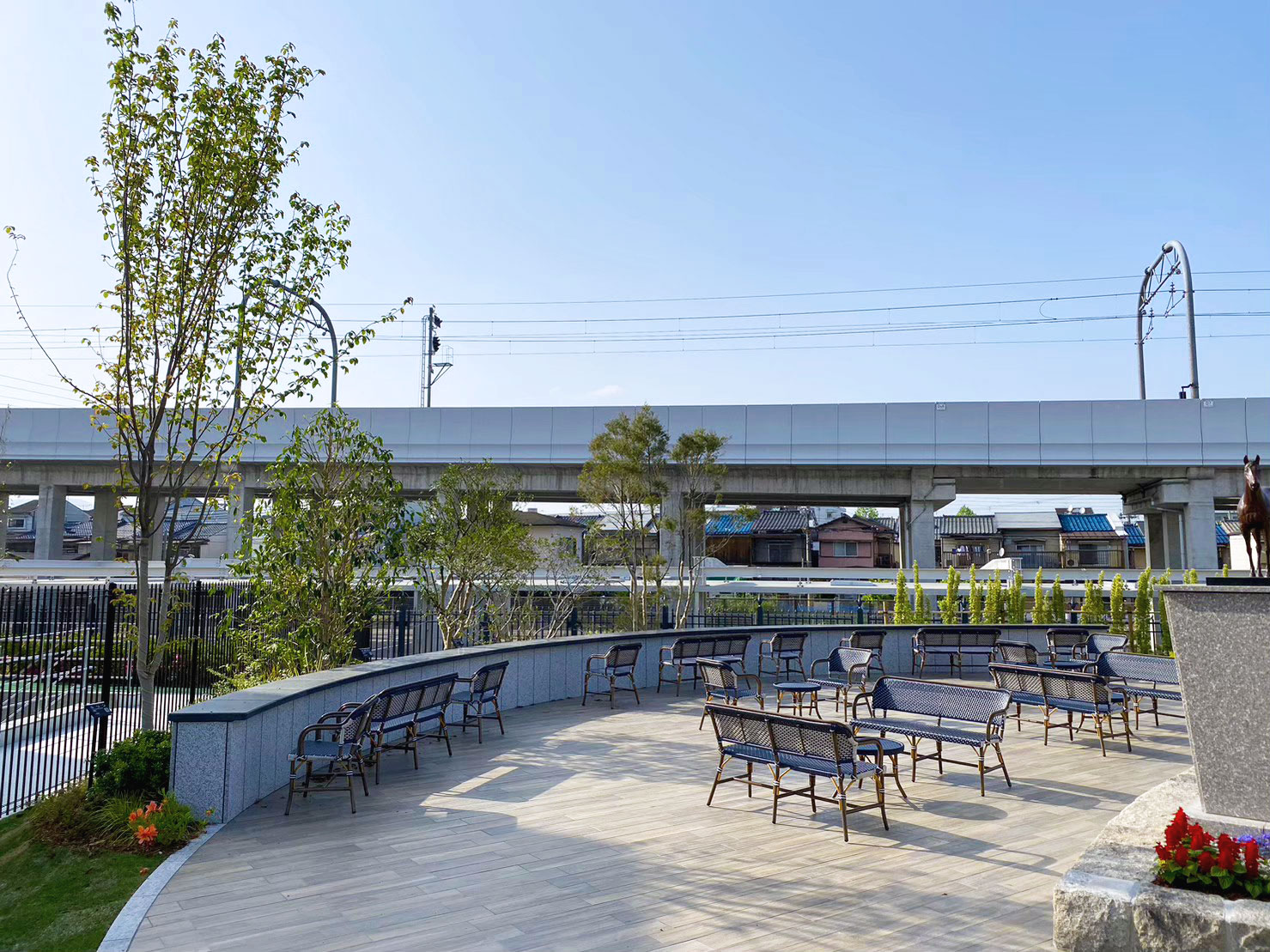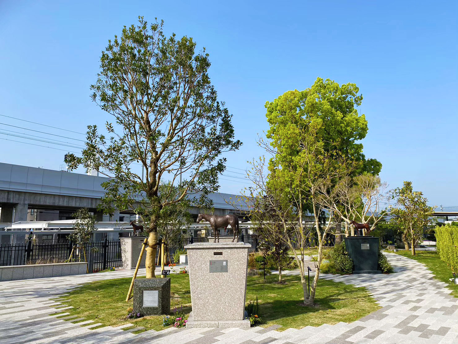 京都競馬場大改装のグランドオープンに伴い、 コース、パドック、記念庭園など様々なエリアにおいて工事をさせていただきました。 この京都競馬場で栄光を飾った歴代の名馬たちの名前や出生にちなんだ樹種を選定しています。